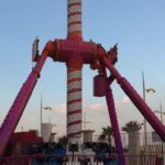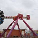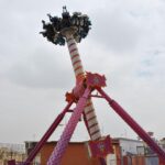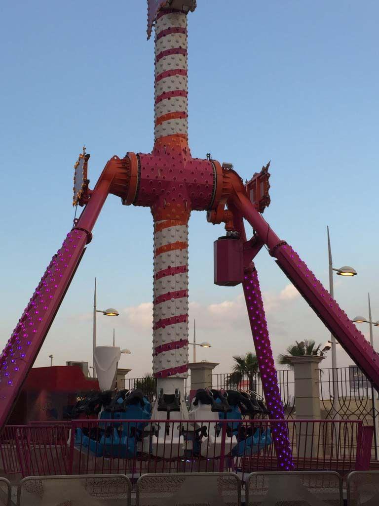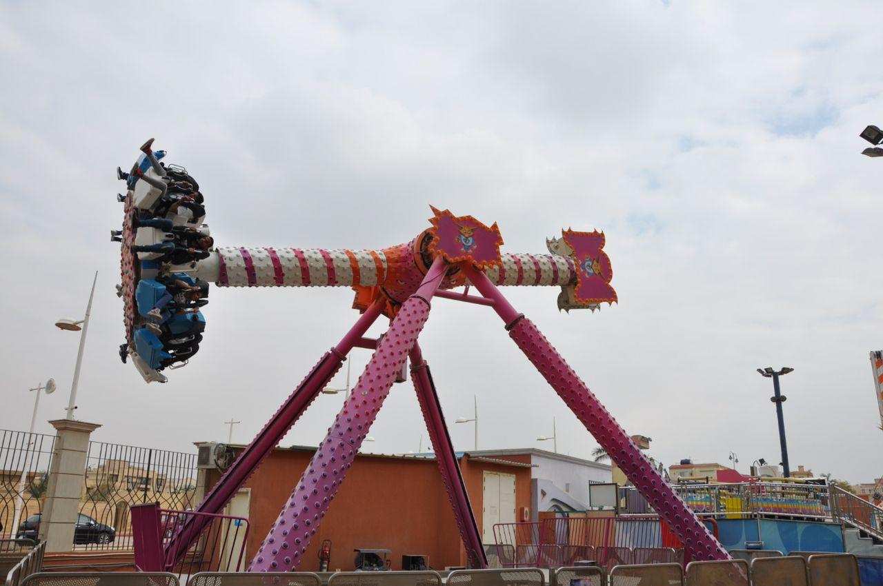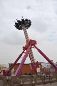 The Dance Party is a pendulum-based ride, also known as “Frisbee.” It consists of a ring of seats attached to one end of an arm, which is attached to a pivot at the other end. The ring of seats spins as the arm swings. Our Dance Party has outward-facing seats. This model is the “Midi” one: it hosts 12 riders. The spin angle is 360°. It fits well both indoors and outdoors.